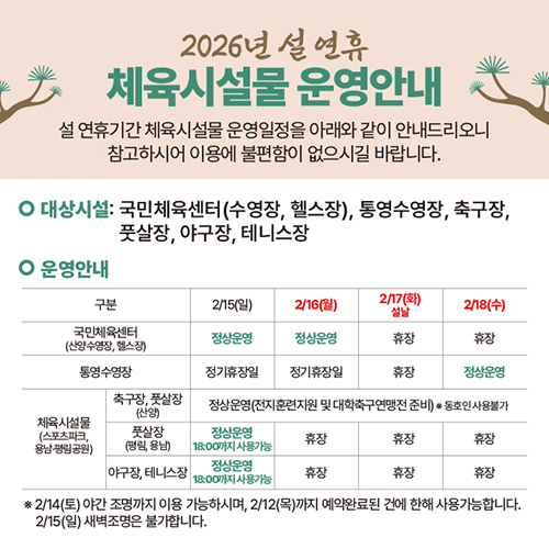 설 연휴 체육시설물 운영 안내