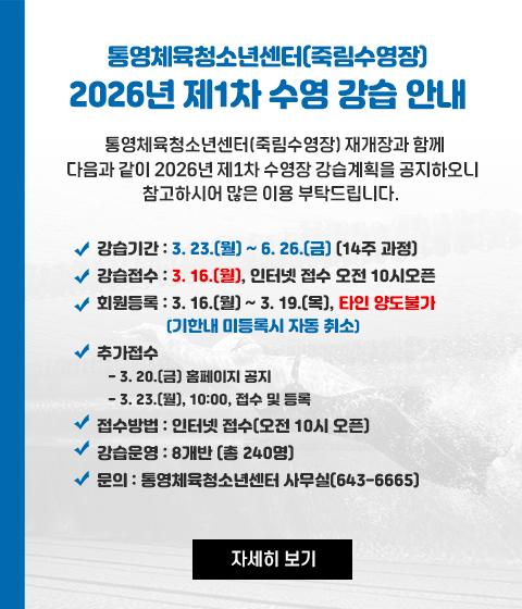 통영(평림)수영장 2026년 제1차(1월~3월) 강습...